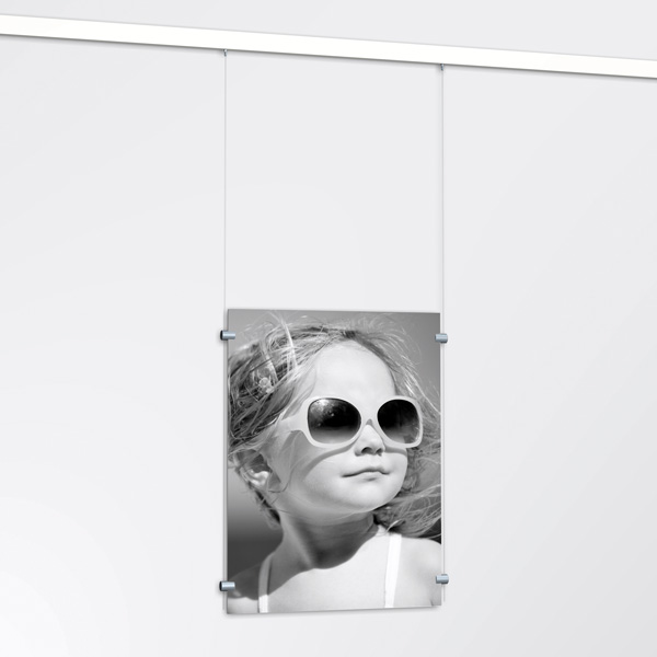 The Cable Display Grip Clamp secures acrylic pockets or panels 2-4mm thick onto taut vertical cables. Cable displays are popular sign suspension kits incorporating tensioned vertical cables used to support variable-height acrylic poster pockets. We offer various wire-hanging display systems and our cable display parts are popular with the sign trade and self-installers alike.